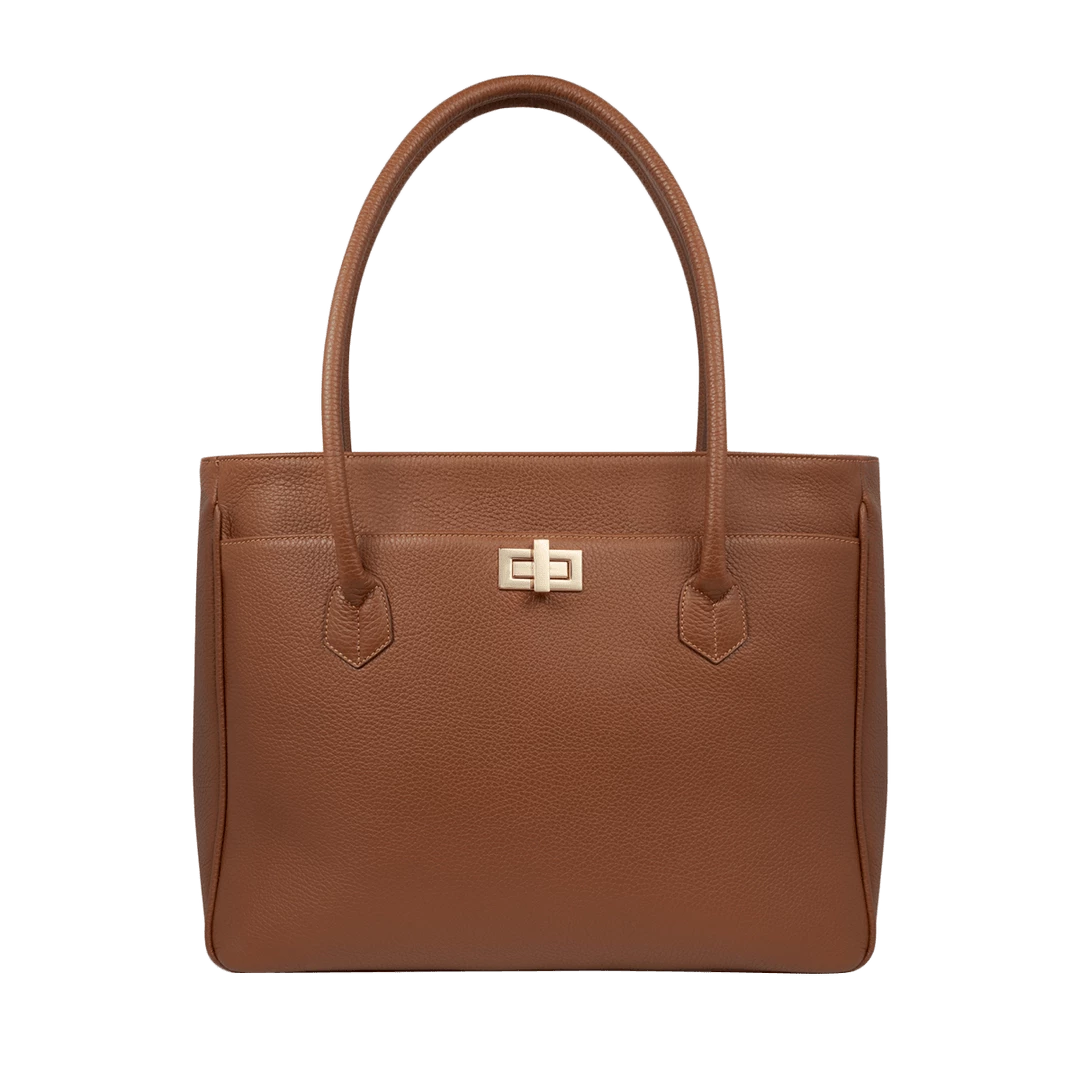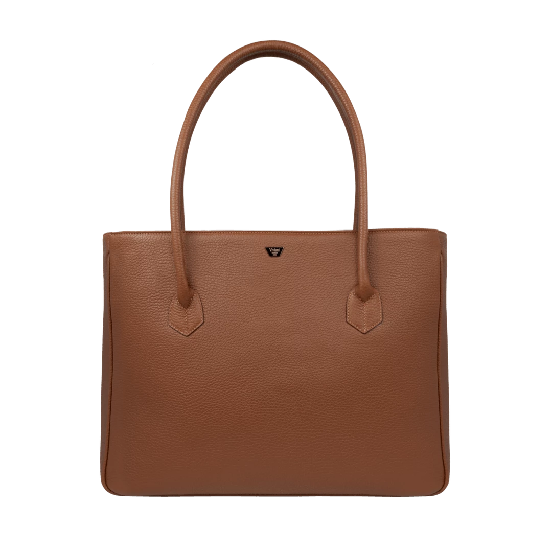 Womenโs bag with shoulder handles, handmade in โalceโ style calf leather, elegant and suitable for work, extremely spacious, can hold A4 documents and folders