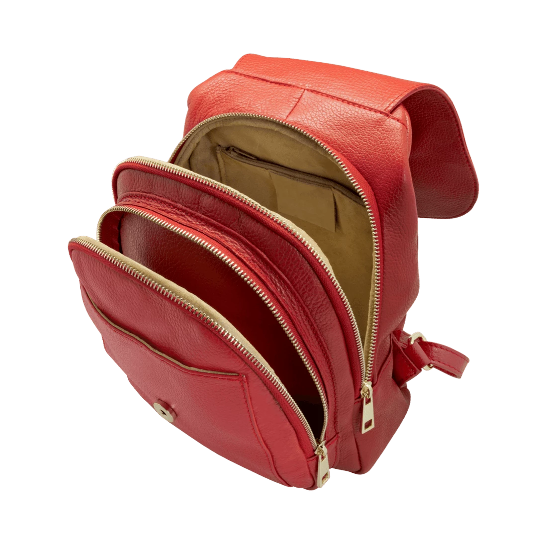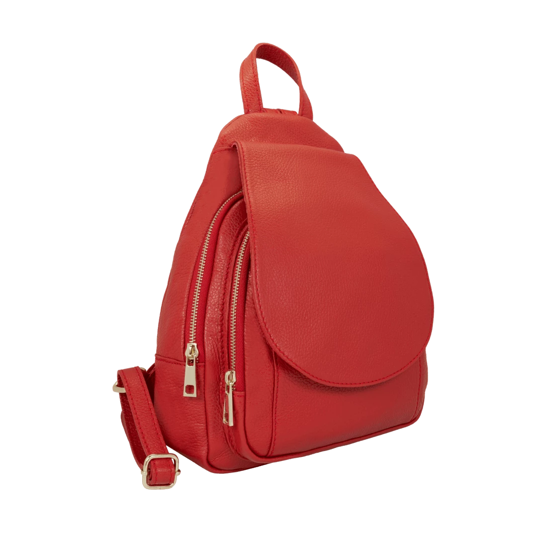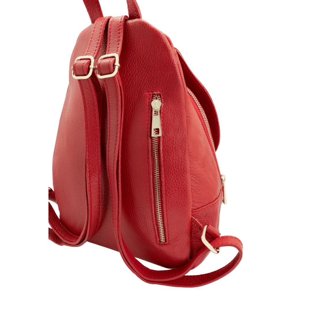 Women’s backpack with adjustable leather shoulder straps and handle, handmade in “alce” style calf leather, suitable for work and everyday use.