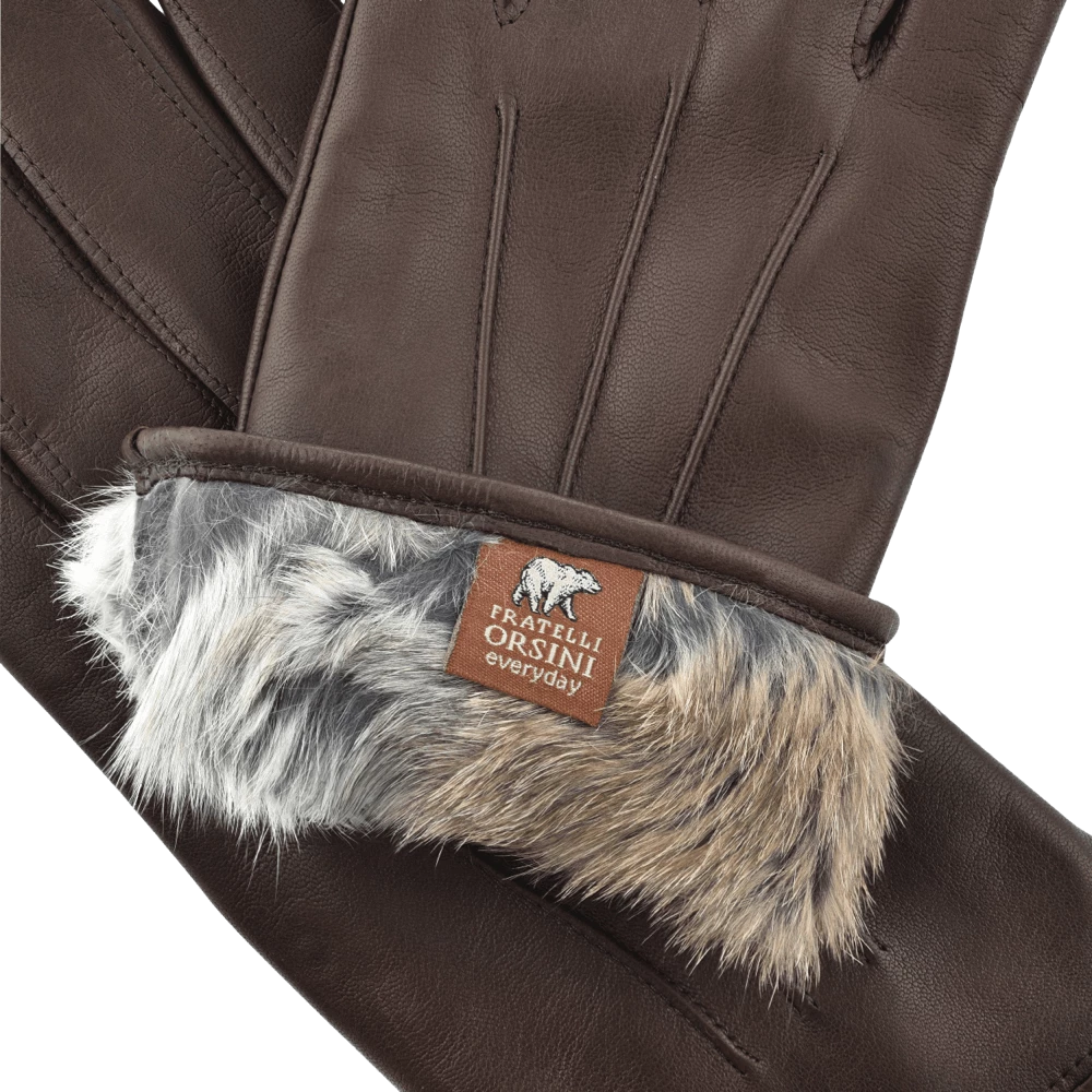 MEN’S ITALIAN RABBIT FUR LEATHER GLOVES BROWN NATURAL FUR