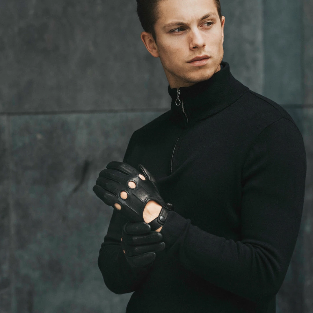 MEN’S CLASSIC LEATHER DRIVING GLOVES LAMBSKIN BLACK