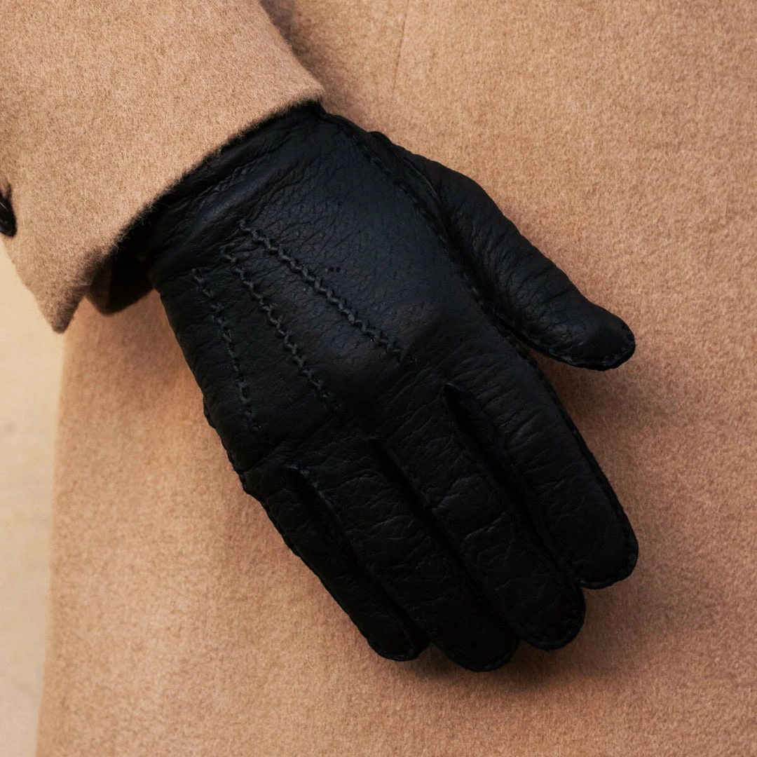 Peccary leather is known for its durability, elasticity and suppleness. This makes peccary leather the perfect material for leather gloves. The leather is wear-resistant and if treated carefully, peccary gloves can last a lifetime. Peccary leather has a soft and grainy surface which can be recognized by visible hair pores in groups of three. These exclusive gloves must of course be accompanied by a luxurious lining. The gloves are lined with 100% cashmere. This lining provides a superb softness and also provides the necessary warmth. The perfect gloves for someone who is looking for the ultimate in quality.